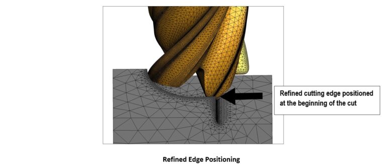 エッジ位置の精度を高めることで、切削長を短くしても有意義な結果が得られます。今回のアップデートでは、精度を高めた切削エッジをブール演算の開始位置に配置し、他の切削エッジに精度を高める処理を適用する必要がなくなりました。選択的なエッジ精度を高めることで、ツールメッシュに必要な要素数を大幅に削減できます。また、シミュレーション実行時間を短縮することで、可変ピッチやチップブレーカーがフルートに与える影響を検証できます。この機能は、サイドカット、コーナーカット、フルスロット加工に対応したソリッドフライス工具とインデックス式フライス工具で利用可能です。