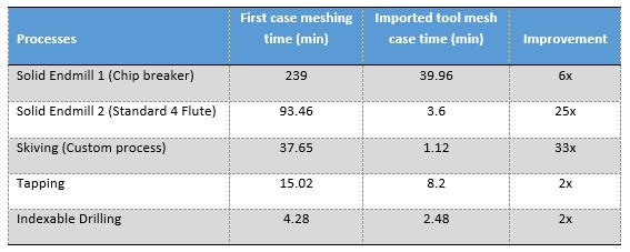 ユーザーは、AdvantEdgeシミュレーションで以前にメッシュ化されたツールを再利用できるようになり、ツールのメッシュ作成時間を大幅に節約できます。このツールの再利用機能は、1つのツールを使用してDOE解析を複数回実行する場合に特に有効です。選択的エッジ細分化を使用するSTEP形式のツールでは、ツールのメッシュ作成は計算コストの高いプロセスです。STEP形式のツールのメッシュを再利用することで、ツールを新しいシミュレーションで使用するたびに、ツールのメッシュ作成時間を最大90%削減できます。