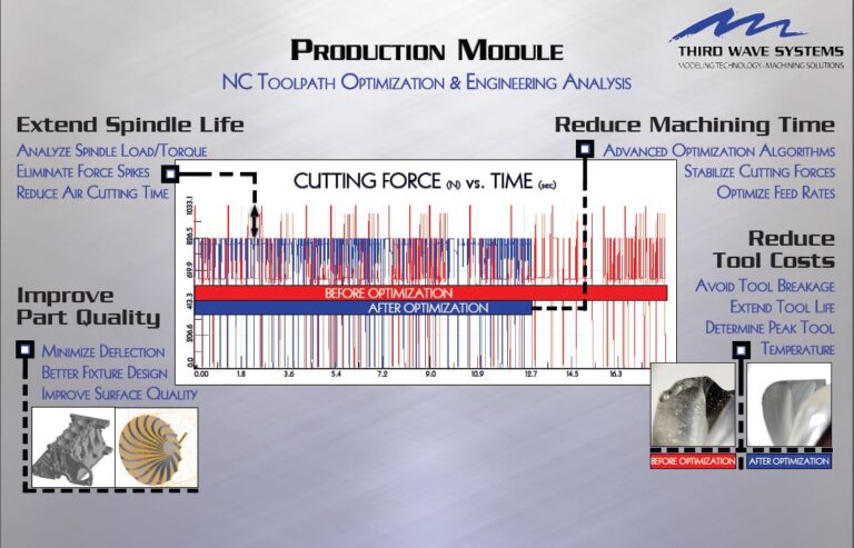 生産モジュールから出力される工具たわみデータは、寸法精度不良、加工物の表面仕上げ不良、工具の摩耗・破損、振動問題などを引き起こす可能性のある工具経路の箇所を特定するのに役立ちます。